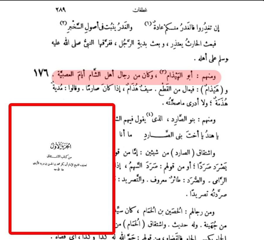 وحتى تتبين أن هذه الأحداث بذاتها وعينها وصفت بالعصبية في الشام فقد ذكر ابن دريد أن أبا الهيذام كان من رجال الشام أيام العصبية. - يقول في الإشتقاق:”ومنهم: أبو الهيذام، وكان من رجال أهل الشام أيام العصبية”3